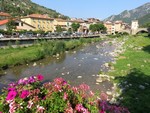 Après une assez bonne nuit au camping de La Ferme, c'est parti pour la fin du Col de Saint Martin. Le camping se situant sur les hauteurs de Valdeblore, il ne me reste plus que 5 km ! C'est une formalité. Je ne m'attarde pas au sommet, ce n'est pas très beau (Station béton). Dans la descente, je m'arrête à la boulangerie de Saint-Martin-Vésubie, petit village du Mercantour dans la vallée de la Vésubie, mais aussi "Station de Trail". Encore six ou sept kilomètres de descente et j'attaque le dernier grand col de ce voyage, le Col de Turini. L'été est bien là maintenant, il fait chaud ! Je fais le début de la montée avec un groupe de cyclos de la Drôme qui a un petit van pour assistance. Du coup, sur le bord de la route, ils me proposent aussi de l'eau (pétillante, plate, et même pluvérisée pour rafraîchir ; ils appellent ça du "phitox" (insecticide pour géner ceux qui sont devant eux et donc plus forts ... enfin ils me doublent quand même ...). Je les retrouve au sommet à la terrasse du resto pour un plat du jour. Là, j'appelle un hôtel à Sospel (avec piscine !) pour ce soir. Sorte de récompense après ce fabuleux périple sportif. Après une descente technique sur une route mal entretenue, j'arrive vers 14h à Sospel. Repos, étape du Tour de France, glace et piscine en slip. Plus qu'une petite journée demain.
