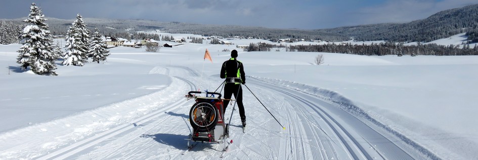 Nous partons donc a ski de Bellefontaine le lac pour Chapelle des bois ... le long de la GTJ. On a ainsi « skipé » le Risoux et sa montée que Stéphane connaît bien pour y passer avec la transju. La piste est très agréable le long du lac. Nous faisons toujours sensation sur la piste avec le chariot. Toujours les mêmes remarques : "vous n'auriez pas une place pour moi ?" ou "il a de la chance derrière, il est tranquille !" Nous arrivons rapidement sur une petite butte de laquelle nous apercevons Chapelle des bois et son clocher. Ça a l'air tout près et en descente. En fait, on met un peu de temps à l'atteindre. De 6 km annoncés au départ par le pisteur, il y a bien 9 ou 10 au final. Mais bon, ca glisse bien et il fait beau. C'est top ! A l'arrivée, on prend le temps de faire faire un peu de ski à Antoine qui s'est réveillé et nous regagnons le gîte. Il est très agréable avec sauna et hammam ... un beau point de chute pour se poser une semaine l'année prochaine par exemple ! En plus, les pistes de Chapelle des bois ne sont qu'à 100 m et elles ont l'air très agréables. L'après midi, Stephane se fait un retour en ski a la voiture pour la ramener sur place. Le soir, un bon repas et au lit ... une nuit agitée nous attend ...