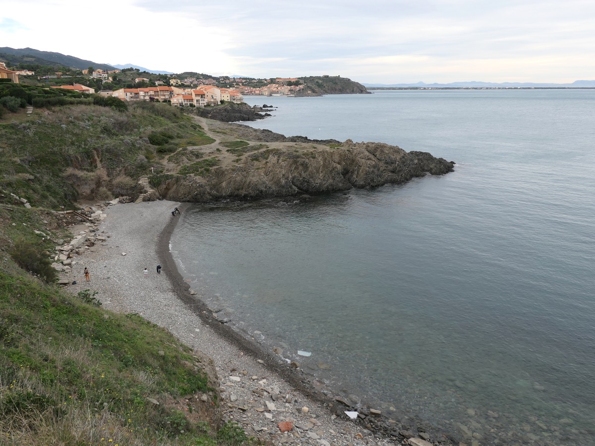 Commençons par le point météo habituel : ce n'est pas aujourd'hui que nous allons prendre des coups de soleil. Départ de l'hôtel des pêcheurs vers 9h00 pour une petite journée. Je me suis rendu compte hier, en regardant les panneaux sur le terrain, que l'étape ne ferait pas 15 mais 10 km. Nous sortons de la ville en longeant le port puis passons à travers le musée et le tombeau de Lacaze Duthiers, grand personnage de la zoologie. Ensuite, nous reprenons la départementale jusqu'à la thalasso et plongeons sur la gauche pour la première crique. De là, c'est un enchaînement de descentes et de montées raides de 30 à 80 m de dénivelé le long de la côte. En fin de matinée nous traversons des paysages typiques avec des flancs de collines zèbrés d'anciens canaux d'irrigation. Nous commençons aussi à traverser des zones calcinées (peut-être dû à l'incendie de l'été 2023 ?) L'objectif de la mi-journée est la plage de Peyrefite où il y a un parcours sous-marin pour y voir des poissons. Heureusement nous sommes équipés ... avec les lunettes de piscine d'Antoine : plus randonneurs que plongeurs ; contre toute attente, Antoine fait de belles observations. Par contre, ça caille un peu sans combinaison de plongée ! Les autres vrais plongeurs en snorkeling, eux, en ont une. Nous y restons un bon moment car l'hôtelier de ce matin nous avait prévenu que le front de mer de Cerbère était en travaux et que ce n'était pas top. Le sentier de la fin de journée est encore assez vallonné. Nous arrivons à notre hôtel « La Vigie », et prenons nos quartiers dans l’annexe « Aragon ». Le soir, alors arrivés devant un restaurant qui nous a été recommandé et confirmé ouvert, nous prenons un gros orage sur la tête, devant le resto… fermé ! Heureusement, au loin, nous voyons de la lumière au restaurant de la plage, le seul ouvert dans le village, mais nous mangeons encore bien.
