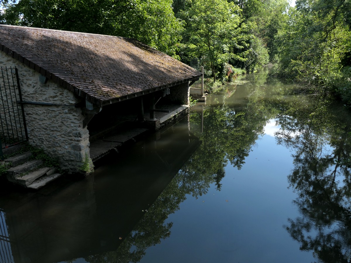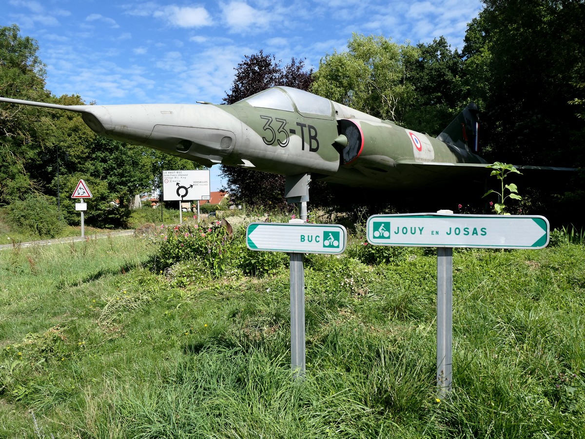 Ce matin, nous reprenons le vélo direction Rembouillet pour notre deuxième étape. Nous repartons par l'avenue de Paris, mais dans l'autre sens. Ça descend plutôt. Nous bifurquons ensuite à droite pour redescendre à Jouy en Josas. A partir de là, nous reprenons la véloscénie où nous l'avions quittée pour rejoindre Versailles. En site propre, c'est plutôt agréable, par contre, ça grimpe un peu. Nous passons près de Buc et croisons un mirage III au bord de la route. Nous arrivons ensuite au plateau de Saclay et voyons un vieil avion de Berlioz au détour d'un rond-point devant l'aéroport de Tournus. Nous l'avions compris, nous sommes dans un lieu historique pour l'aviation française. Nous croisons même un site de l'entreprise SAFRAN. Soudain nous quittons l'asphalte et plongeons littéralement dans la vallée de la Mérantaise. La remontée de l'autre côté semble moins raide que la descente, heureusement. Nous retrouvons ensuite les petites routes et les villages et replongeons ensuite vers Saint Rémy les Chevreuses où nous pique-niquons. Après deux ou trois kilomètres dans la vallée, nous remontons, par une route asphaltée cette fois. Après un arrêt "mûres" en bord de chemin, nous regagnons la forêt de Rambouillet. Au début en bord de Départementale très passante, l'étape se termine en forêt par d'interminables lignes droites (deux en fait), mais goudronnées.