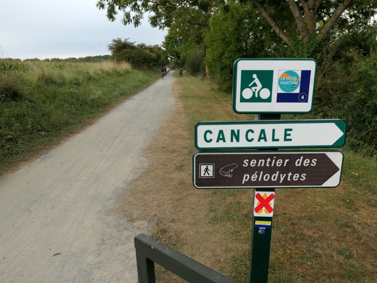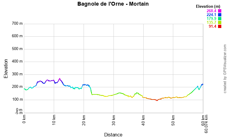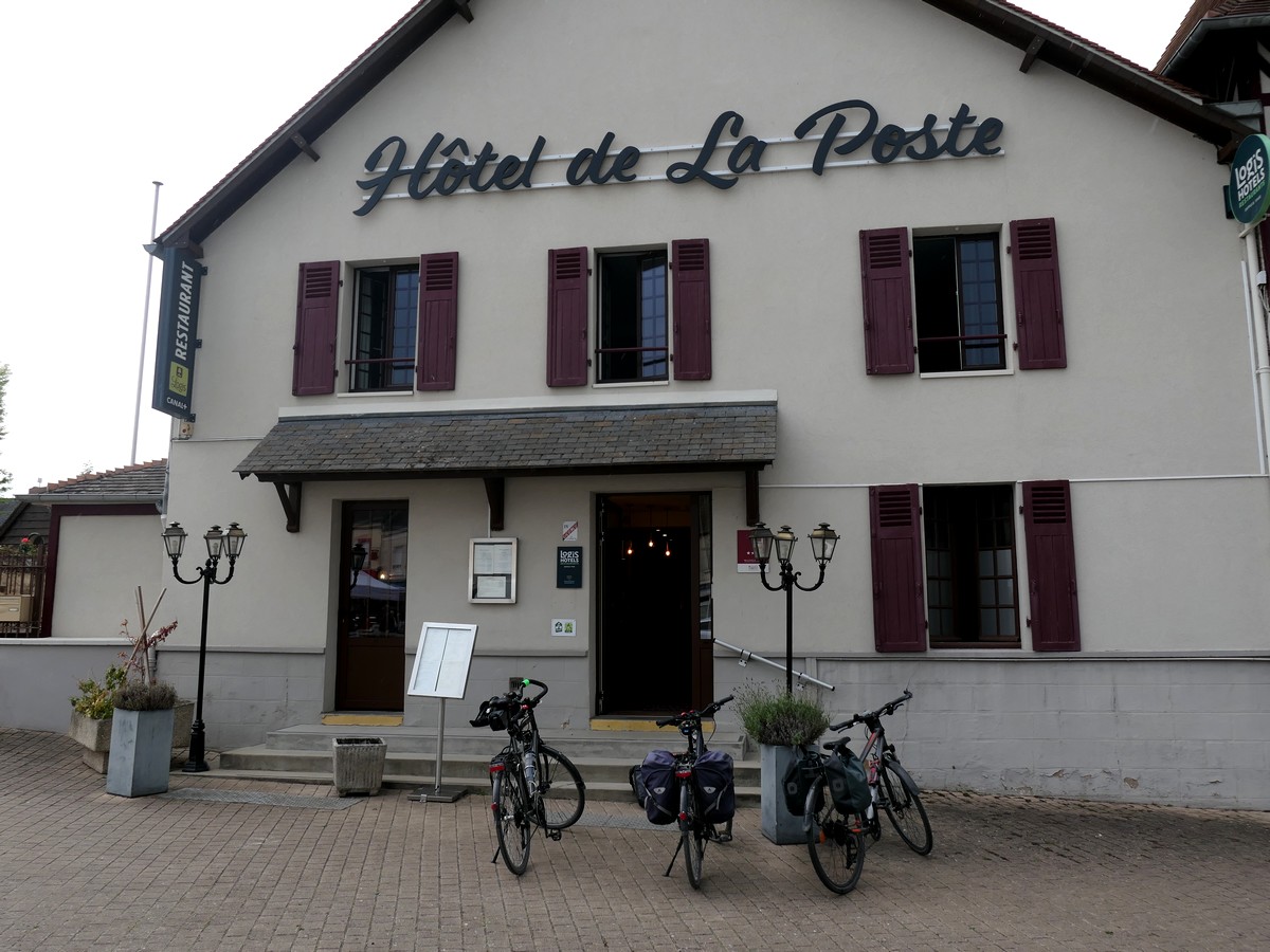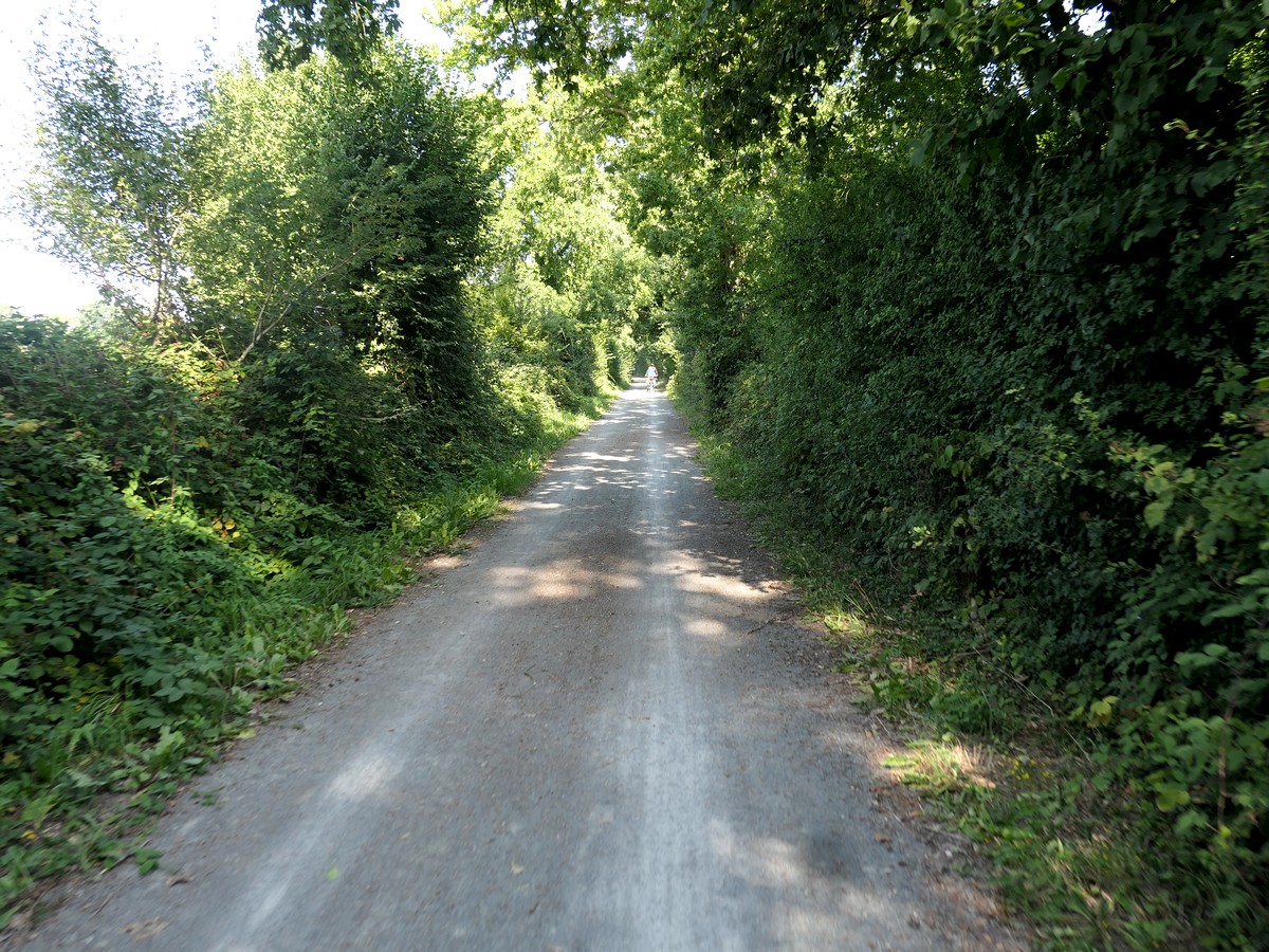 Journée "Voie verte ancienne ligne chemin de fer" donc… pas grand chose à dire… à part le passage du méridien de Greenwich et beaucoup d'anciennes gares le long du chemin. Nous avions le choix avec un itinéraire plus sportif par Carrouge et son château mais avons préféré celui-ci. Cependant, toute la première partie de l'étape est finalement en faux plat montant, sur un revêtement souple, dû à pas mal de gravillons. Nous avions l'impression de nous enfoncer parfois et donc de ne pas avancer. La monotonie de la voie n'a rien arrangé. Bref, pas si facile que ça... A partir de Couterne, nous quittons la voie verte pour "grimper" vers Bagnole de l'Orne pour les 8 derniers kilomètres. J'en profite pour passer par SEQENS. Nous empruntons parfois des chemins forestiers pour arriver à Bagnole. L'accueil à l'hôtel Bellevue est professionel et très très attentionné.