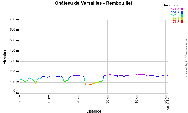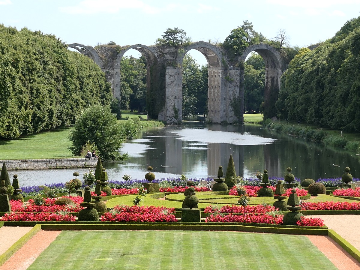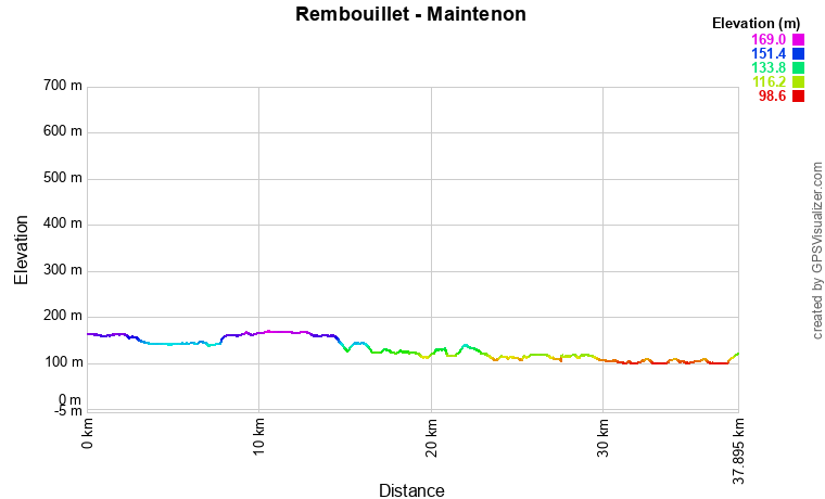 Aujourd'hui, le départ est royal. Nous commençons l'étape en roulant dans les jardins du château de Rambouillet. Ensuite, nous passerons essentiellement par des routes de campagne très peu passantes. Nous alternerons entre petites descentes et légères montées, mais le profil général restera descendant. Nous ne nous attarderons pas au pique-nique de midi car nous souhaitons arriver pour 15 heures et la visite guidée du château de Maintenon. Nous arriverons bien à l'heure, même après avoir posé nos affaires à l'appartement chez l'habitant, mais malheureusement, les dernières places sont prises. Nous visitons tout de même par nous-même. Assez intéressant, entre l'histoire atypique de Madame de Maintenon et l'aqueduc souhaité par Louis XIV et jamais terminé !