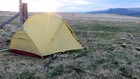 Ce matin, la toile de tente est toute sèche ... aucun risque de condensation avec le vent qu'il y a eu cette nuit ! Le temps est clément, le ciel est bleu, on replie le bivouac tranquillement. Avant de reprendre le chemin, nous montons au Puy Corde pour avoir une vue sur le lac de Guéry avec le soleil donnant dessus. C'est superbe, d'autant plus que nous avons l'ombre du puy sur lequel nous nous trouvons qui se projette juste devant nous. Cela nous rappelle Tenerife et la fameuse ombre du Teide sur l'océan. Nous nous remettons en route. Nous sommes hors sentier pour marcher sur la crête et rejoindre le Puy de l’Aiguiller. On adore !!! Nous voyons le Puy de Dôme sur notre gauche et le massif du Sancy sur notre droite. Nous galérons un peu pour rejoindre le GR en contre bas en passant à travers une forêt d'épicéas replantés. Ensuite, nous déroulons jusqu'au lac de Servières où nous faisons une pause. Nous repartons tranquillement par un chemin en forêt qui s'apparente à une balade familiale jusqu'au village de Pessade. Nous y faisons le plein d'eau à la fontaine. Malgré le snack bar très attirant (il est un peu tôt), nous repartons pour une heure avant de se mettre à l'abri du vent pour le casse croûte en bord de chemin. Depuis Pessade, nous reprenons de l'altitude progressivement pour atteindre le Col de la Croix Morand. Et oh surprise, une petite auberge bien sympathique propose des gaufres ... on y reprend des forces avant l'ascension du Puy de la Tache. C'est alors le début d'une enfilade de puys jusqu'à notre bivouac du soir, au Col de la Croix Saint–Robert. Nous galérons un peu pour trouver l'un des deux cours d'eau indiqué sur la carte mais c'est bon, on fait le plein. Nous plantons la tente assez à découvert mais le vent est moins fort qu'hier. Je m'endors plus facilement que la nuit dernière. Et à 1h du matin ... CRAC ! Le vent a forci et les rafales ont cassé l'un des arceaux du sommet de la tente. En même temps, la toile extérieure s'est déchirée. Nous tentons une sortie pour réparer mais bien sûr, je n'ai pas pris de duct tape avec lequel une réparation de fortune aurait pu être envisagée. Dehors, nous avons vite froid. Nous prenons la décision d'enlever définitivement la toile extérieure pour ne laisser que la toile intérieure qui ne tient plus qu'avec une partie des arceaux. Avec cette protection toute relative, la nuit va maintenant devenir très longue !